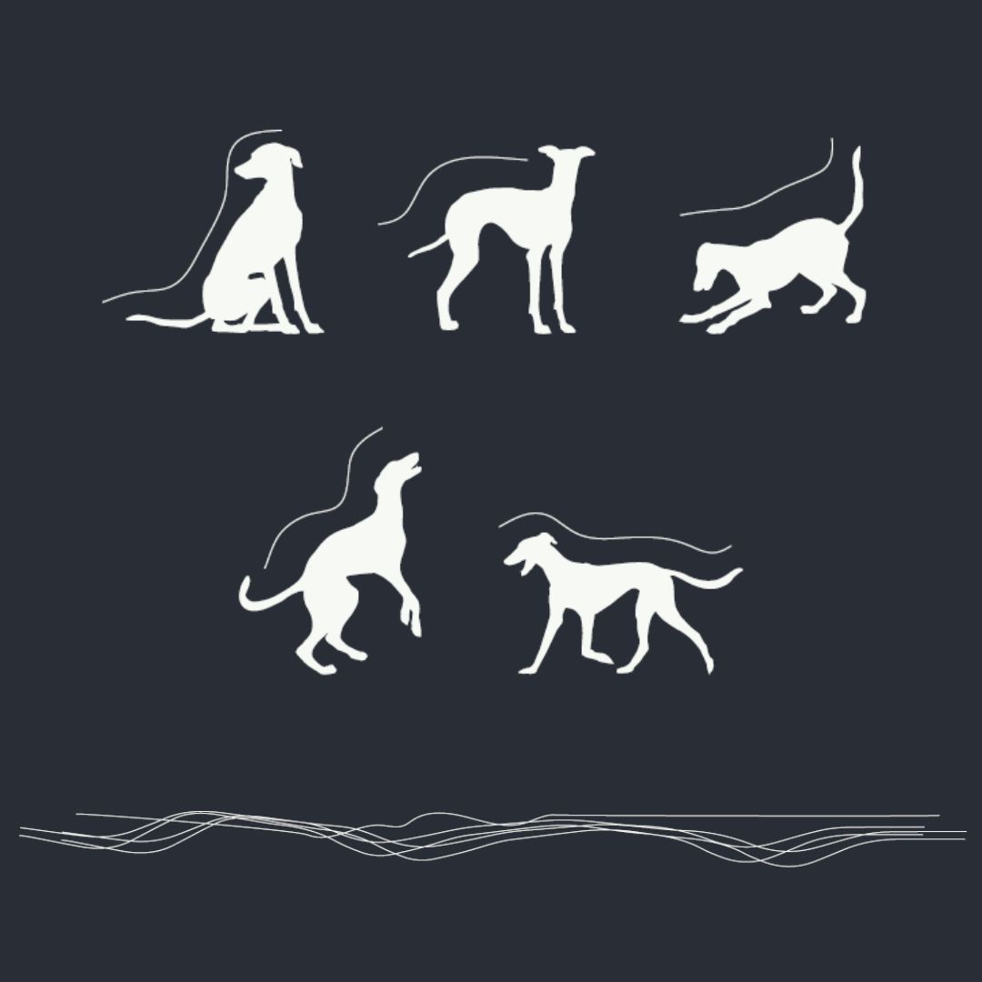 Para representar a Norna, hemos emprendido un proceso de abstracción, partiendo inicialmente de su silueta característica y el contorno específico de su lomo. La silueta inicial sirvió como esquema base, desde el cual se fue modificando gradualmente la línea original, a través de un proceso iterativo de refinamiento y simplificación.